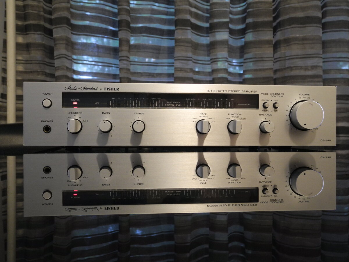 The Fisher CA-400 is a mid-range integrated stereo amplifier featuring an STK465 hybrid power circuit, capable of delivering up to 30 watts per channel into 8Ω loads. Its build quality is above average, which is consistent with other Fisher components from that era.