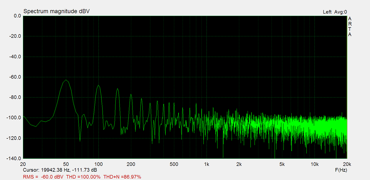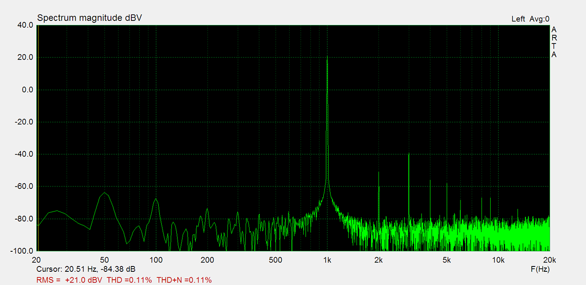 Maximum power is measured using 8Ω resistors on both channels. A 1kHz sine wave input signal is applied and gradually increased until higher harmonics rise significantly. Typically, this is the point at which output clipping occurs.