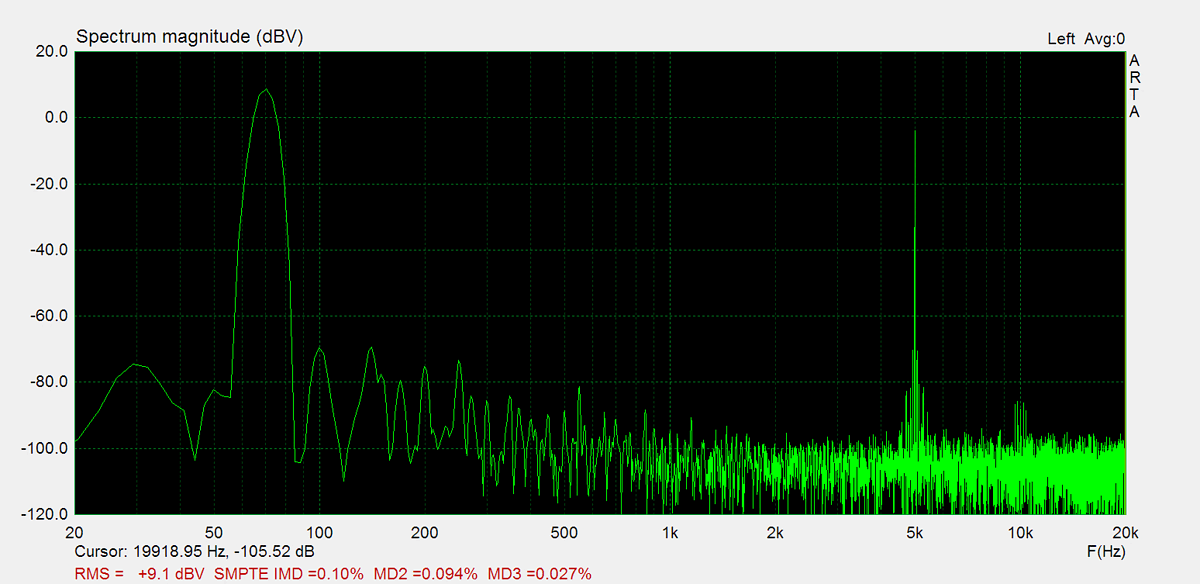 IMD (70Hz, 5kHz, 1W): 0.10%