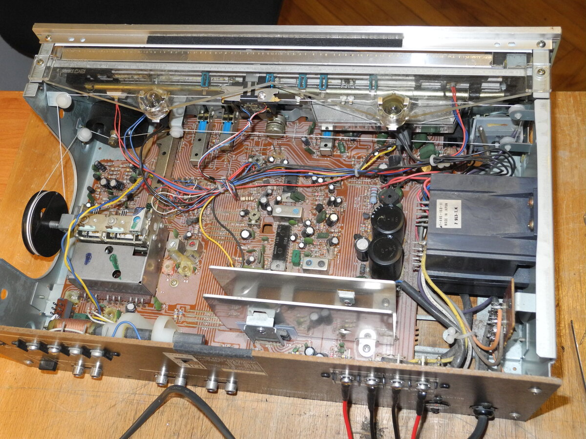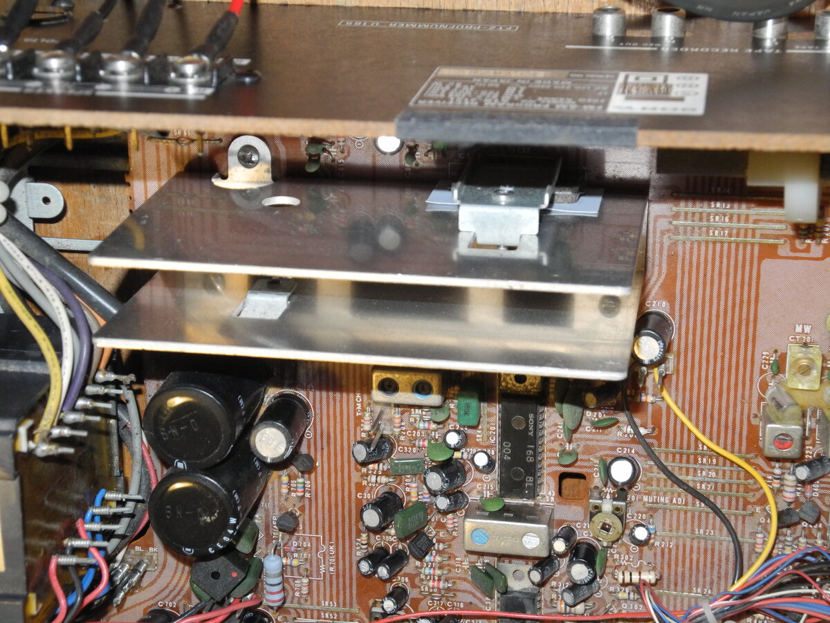 The Sony STR-212L is a stereo receiver from the late 1970s. The "L" in the model name denotes the European version, which supports the LW band in addition to FM and MW reception. The tuner section is built around Sony CX168 and CX178 ICs, while the FM front end features a three-gang tuning capacitor. The power amplifier section uses two HA1350S ICs for the output stage, with 3300µF capacitors in the power supply. There is no relay-based speaker protection circuit in the output stage.