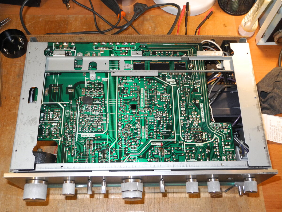 In this unit, the two fuse resistors R207 and R302 (100Ω) were faulty, so the tuner section was not working.